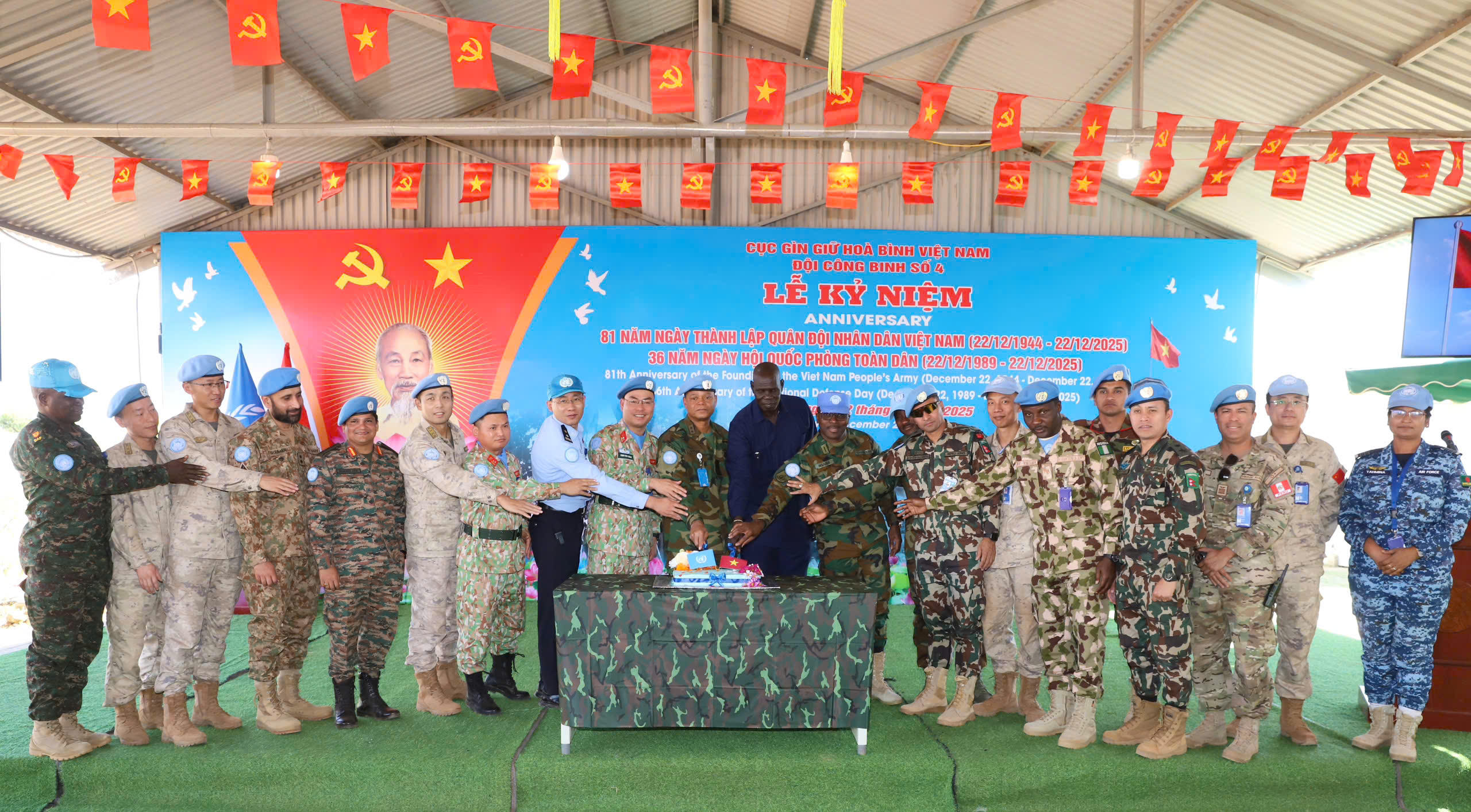 15/12/2025Trong quá trình thực hiện nhiệm vụ Gìn giữ hòa bình Liên Hợp Quốc tại khu vực Abyei (UNISFA), Đội Công binh số 4 của Việt Nam đã chủ động triển khai đồng bộ nhiều hoạt động hưởng ứng Tháng hành động quốc gia phòng, chống HIV/AIDS năm 2025.