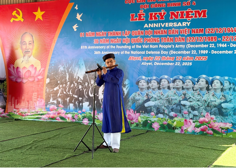 20/12/2025Ngày 19/12, trong không khí trang nghiêm và nồng ấm, Đội Công binh Số 4 Việt Nam tại Abyei đã long trọng tổ chức buổi lễ kỷ niệm 81 năm Ngày thành lập Quân đội nhân dân Việt Nam. Sự kiện không chỉ là dịp để nhìn lại chặng đường lịch sử vẻ vang mà còn là cầu nối gắn kết, tăng cường tình hữu nghị với cộng đồng quốc tế và chính quyền địa phương.