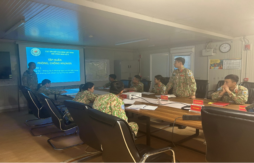 15/12/2025Trong quá trình thực hiện nhiệm vụ Gìn giữ hòa bình Liên Hợp Quốc tại khu vực Abyei (UNISFA), Đội Công binh số 4 của Việt Nam đã chủ động triển khai đồng bộ nhiều hoạt động hưởng ứng Tháng hành động quốc gia phòng, chống HIV/AIDS năm 2025.